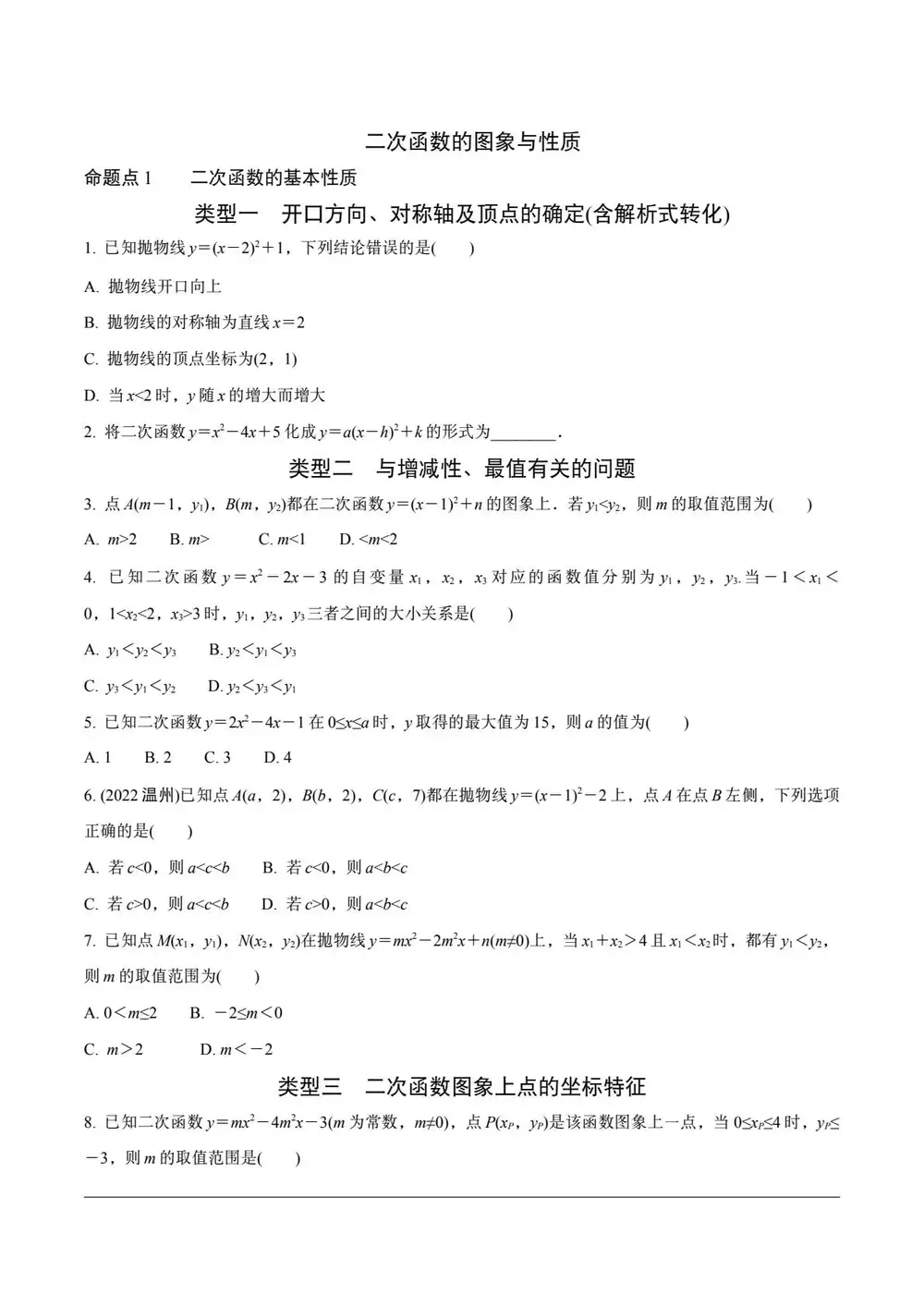 上一篇:九年级下学期数学 :函数图象与性质探究题、二次函数性质综合题